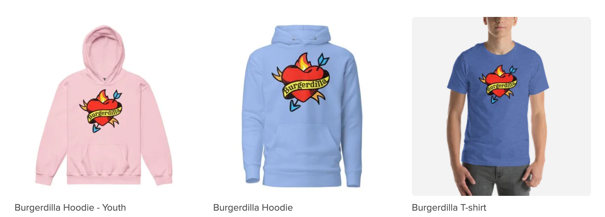 NEW! Print on demand Burgerdilla Merch in a variety of attractive colors. Shop here: